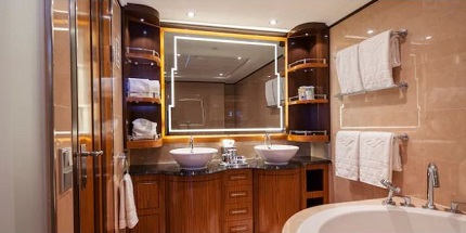 Zariadenie kajút: dvojlôžková queen posteľ (matrace Posturepedic Premium Plush, bielizeň z egyptskej bavlny), kvalitné uteráky, skriňa, kúpeľňa so sprchou, vaňou a WC, sušič na vlasy, kozmetika H20+ Spa (šampón, kondicionér a telové maslo), obývacia časť so sofa a stolíkom, oddeliteľná závesom, skriňa, 22 palcová plochá Tv, bezpečnostná schránka, telefón s priamou linkou, iPod stanica, veľké zrkadlo, minibar, regulovateľná klimatizácia.