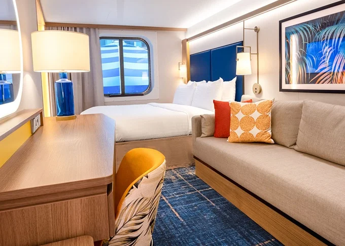 T5 - Vnútorná kajuta s oknom / Surfside Family 17 m². Neotvárateľné okno s výhľadom na štvrť Surfside. 8. paluba vpredu. Max 4 osoby. 4 568 € 1 142 € za osobu
