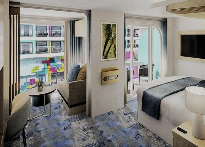 SF - Surfside Family Suite 25 m² + 5 m² balkón s výhľadom na štvrť Surfside. 9,10,11. paluba vzadu. Max 4 osoby (2 dospelé a 2 deti). Výhody Royal Suite Sky class. 6 902 € 3 451 € za osobu