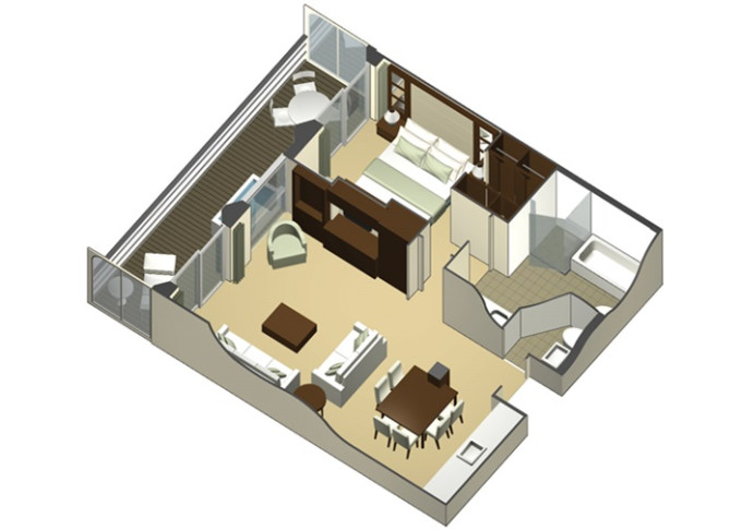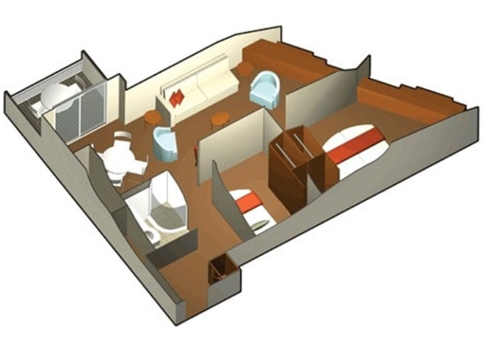 CS - Celebrity Suite 37 m² + balkón 10 m². 10,11. paluba. Max 4 osoby.Výhody Suite. 7 708 € 3 854 € za osobu