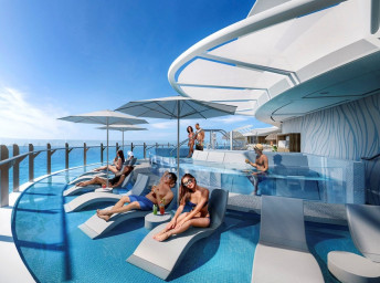 | A3 - AquaTheater Suite 56 m² + balkón 58 m². Max 4 osôb. Výhody Royal Suite Sky Class. | 5 124 € 2 562 € za osobu | ||
