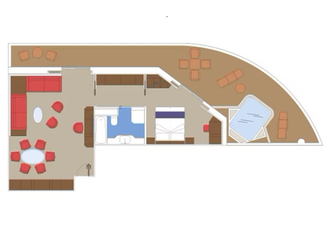 | YC4 - Yacht Club Owner's Suite s vírivkou 104 m² + balkón s vírivkou 48 m² alebo 78 m² / balkón s vírivkou 65 m². Oddelená obývačka a spálňa, šatník, kúpeľňa s vaňou. Max 4 osoby. 16/18. paluba. Cenový model MSC Yacht Club. | 11 490 € 11 490 € za osobu |