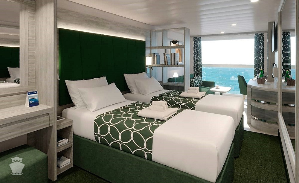 - Ubytovanie v plne vybavenej kajute: vlastná kúpeľňa so sprchou a WC, interaktívna TV, telefón, safe, sušič na vlasy, regulovateľná klimatizácia, minibar (za poplatok). Pripojenie na internet cez Wi-fi (za poplatok)