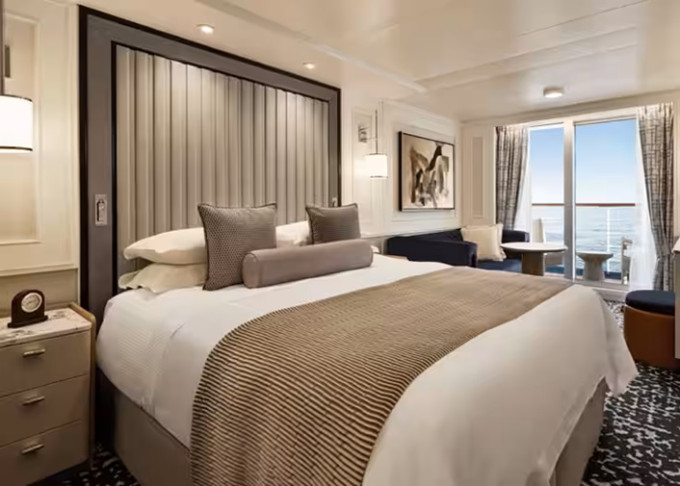 - Owner’s Suites: súkromný obed v apartmáne od 12:00 do 14:00 (voliteľné) v deň nalodenia