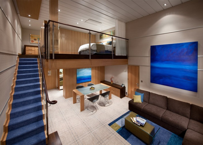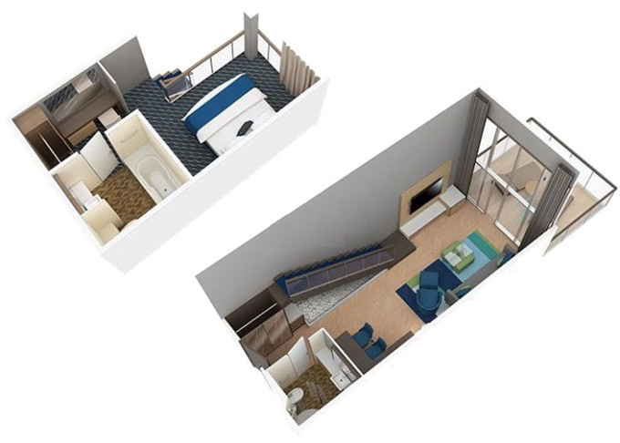 TL - Star Loft Suite 67 m² + balkón 38 m². 2-podlažný apartmán.17. paluba. Max 4 osoby. Výhody Royal Suite Star Class. 22 864 € 5 716 € za osobu