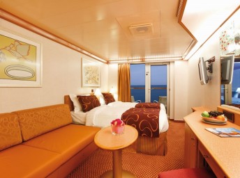 | PS - Panorama Suite s balkónom 62,5 m² (vrátane balkónu). Max 2-4 osoby. 4. až 8. paluba. Cenový model All Inclusive. Výhody Suite. | 7 988 € 3 994 € za osobu | ||