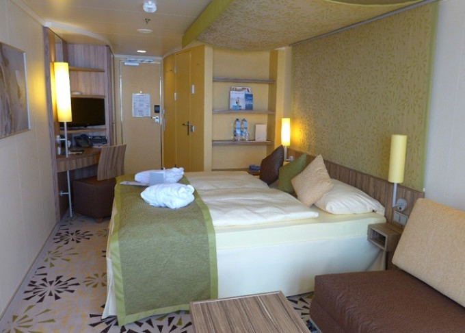 CA - Vonkajšia kajuta PREMIUM / obmedzený výhľad od 14 m². Neotvárateľné okno / obmedzený výhľad. 6. paluba. Max 4 osoby. Cenový model Premium. 8 150 € 4 075 € za osobu
