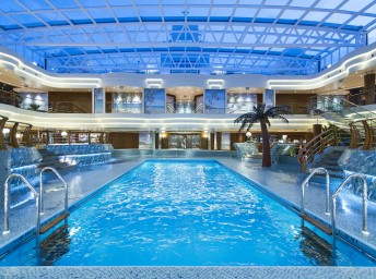 - Športové aktivity na otvorených palubách (jogging, basketbal, futbal, tenis), bazény a ležadlá