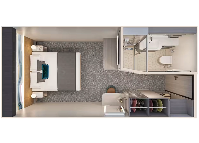 IA - Vnútorná kajuta 15 m². 12- 16. paluba. Max 2 osoby. 2 876 € 1 438 € za osobu