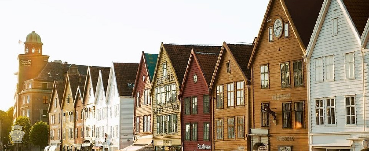 Bryggen / Tyskebryggen (Svetové Dedičstvo UNESCO). Historická časť mesta s históriou siahajúcou do 11. storočia. Farebné drevené hanzovné domy s typickými vysokými štítmi. Kedysi obydlia rybárov a sklady, dnes sa v nich nachádzajú obchodíky so suvenírmi, galérie umenia a reštaurácie. Vzdialenosť od prístavu: 500 m